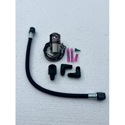This system can be configured in two ways. Either as a progressive or non-progressive flow. Included is our Pulse Series solenoid that can be pulsed up to 26 hertz at 200 psi making it well suited for progressive use. System is universal and can be fitted to any centrifugal supercharger or turbocharger volute. Stainless steel hoses are provided longer than need to allow the user to cut and fit the hoses to desired length. Customer only needs to cut the hose to the desired length.